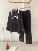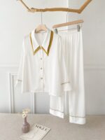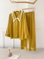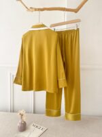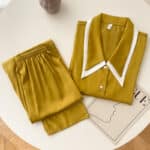 Notre pyjama en satin à l’allure rétro est disponible dans différentes couleurs pour répondre à vos envies et votre style. Ayez de l’allure même si vous rester cocooner à la maison ! Ultra confortable à porter, le satin en plus d’être doux au toucher et sur votre peau gardera la chaleur de votre corps pour passer de douces nuits, tout en vous laissant respirer pour être encore plus agréable. Été comme hiver on porte ce joli pyjama cocooning car le satin est un type de tissu qui permet la thermorégulation du corps.
