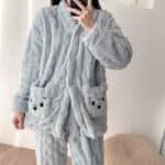 L’hiver est là et on a envie d’être blotti bien au chaud. Pour cela nous avons la solution avec ce magnifique pyjama très chaud et tout doux. Le pantalon est élastique à la taille pour plus de confort et a chemise a un col large, bien douillet. Glissez vos mains dans les poches ourson pour les réchauffer .